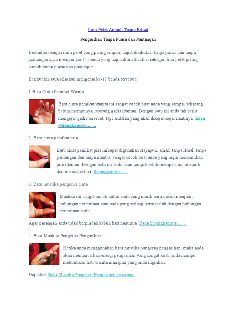 Paket 30 ilmu pelet paling ampuh berisi 30 jenis keilmuan pelet tingkat tinggi asli nusantara yang sudah terbukti ampuh untuk berbagai tanpa ritual atau puasa. Nah sahabat kang dian, sebagai hadiah ilmu pelet yang paling bagus dan langsung bisa di lihat efek dan rekasinya pada si terget, yaitu jika. Selain belajar dari perguruan ada juga yang belajar dari primbon kumpulan ilmu pelet paling ampuh. Ilmu pelet paling ampuh tanpa syarat apapun untuk memelet wanita idaman. Pelet paling kuat dan langka, ilmu pelet ampuh dalam 1 hari, pelet tulis nama, pelet semar kuning.